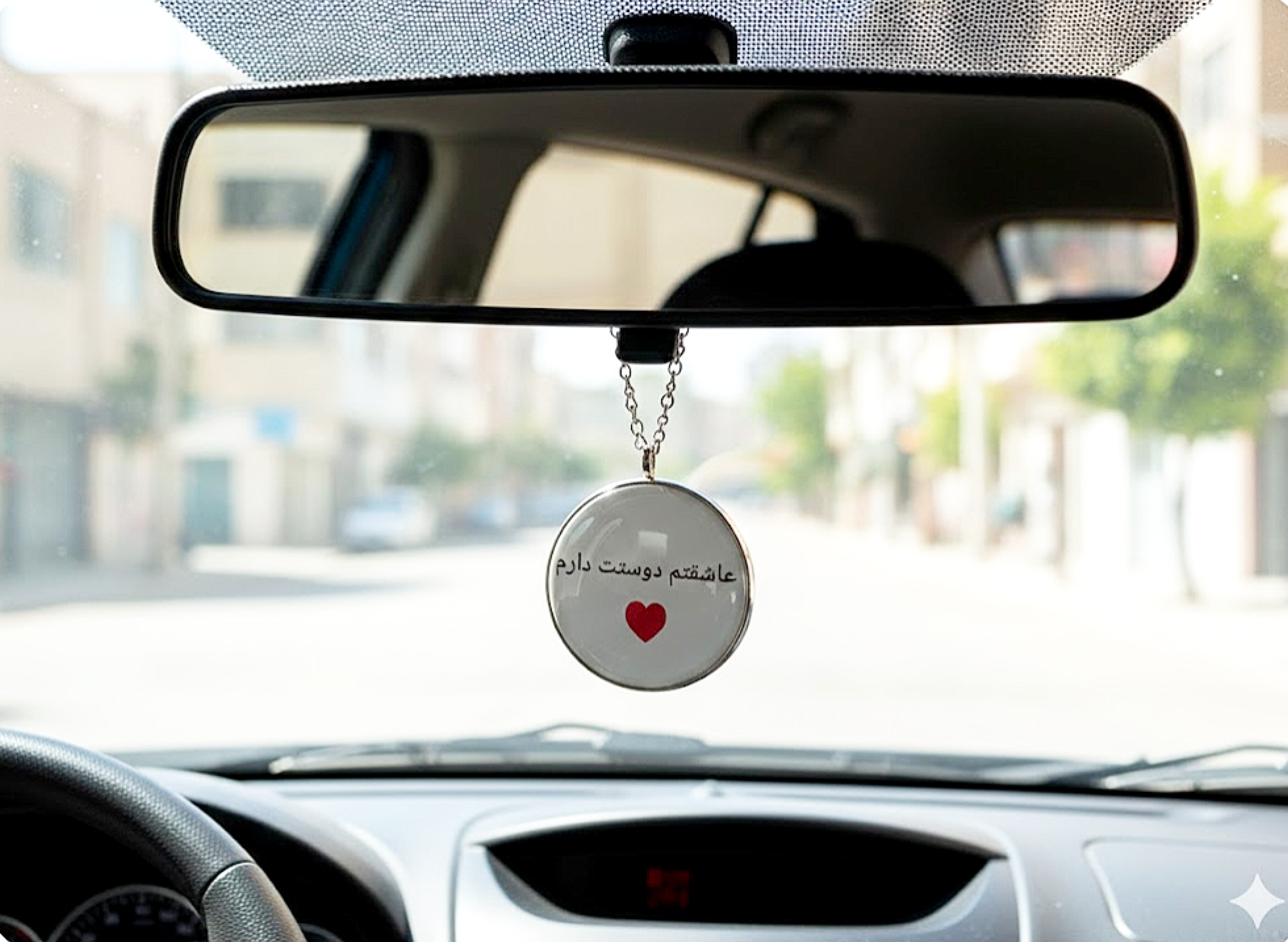 آویزماشین دوطرفه عکس یامتن شفاف طرح دایره چهارسانت نقره ایی